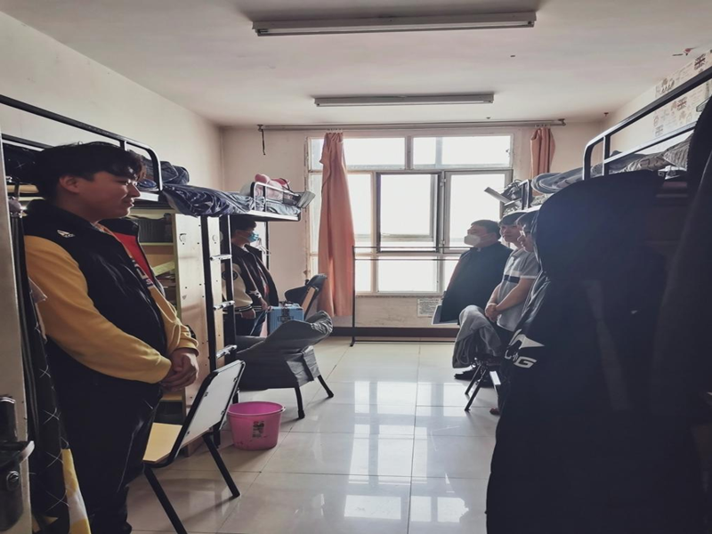 在走访过程中,英语专业学生党支部书记兼辅导员金春宪携团总支成员检查了在校生宿舍情况并评选了优秀寝室,嘱咐同学们要注意保持卫生整洁,如有异常情况,要及时报告。同时,着重强调了安全问题,叮嘱大家严禁使用违规电器,不得在寝室楼内吸烟,室外不能乱扔烟头,提醒同学们要提高安全防患意识,切不可粗心大意。最后,耐心询问了同学们的诉求并给予帮助建议,同学们与老师沟通融洽,纷纷表示会继续严于律己,努力养成勤打扫、勤通风、勤消毒的好习惯,维持宿舍安全,为打造和谐文明宿舍贡献一份力量。