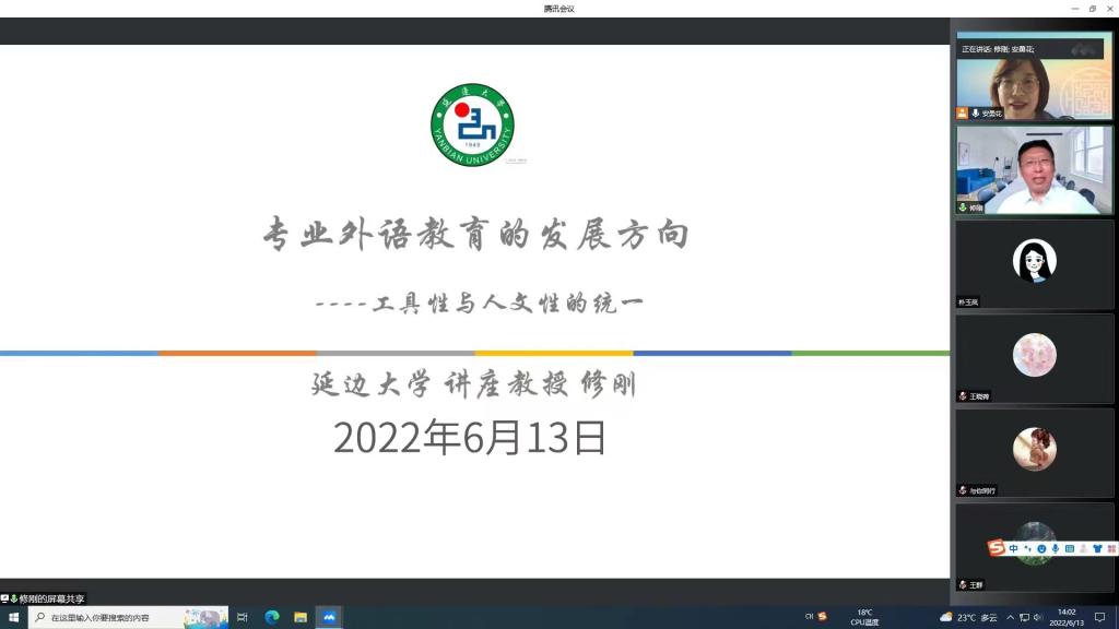 的邀请,教育部外国语言文学类教学指导委员会副主任任委员、日语分委员会主任委员、中华日本学会副会长、延边大学一流学科特聘讲座教授、天津外国语大学修刚教授做了题为《新时代专业外语教育的发展方向——谈工具性与人文性的统一》的讲座。讲座以腾讯会议方式举行,澳门银河
