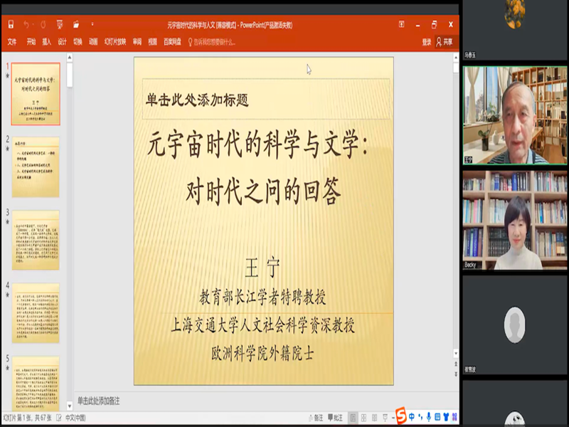 的邀请,教育部长江学者特聘教授、上海交通大学人文社会科学资深教授、中国社会科学院大学特聘讲席教授、延边大学特聘教授王宁作了题为“元宇宙时代的科学与人文:对时代之问的回答”的讲座。讲座以腾讯会议方式举行,澳门银河