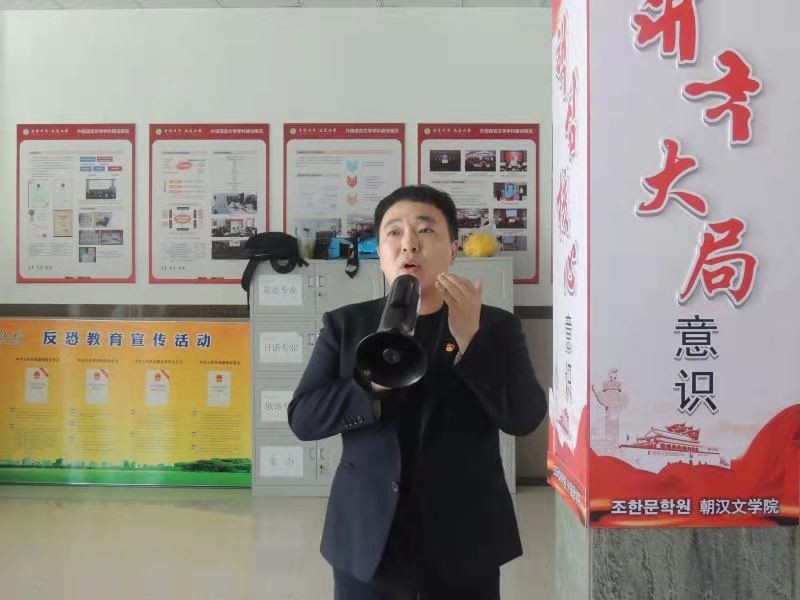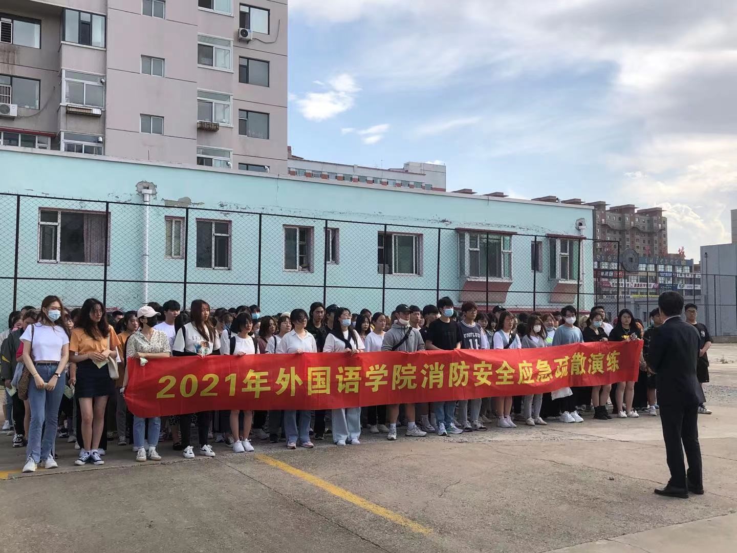 于2021年5月19日14:30分在融合楼举行了紧急疏散消防演练。学院党委书记全永男、学院学工办主任金春宪、学院团委书记郭鲜丹以及各专业辅导员出席了本次活动。2019、2020级同学以及各专业团总支成员参加了本次活动。