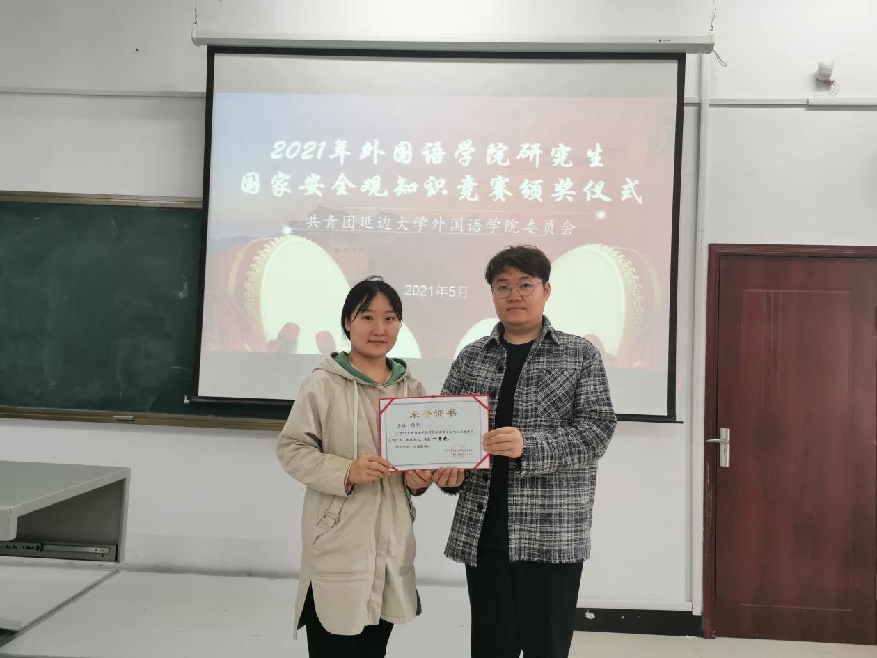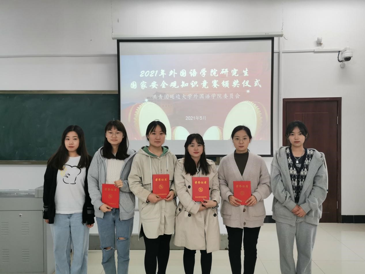 本次知识竞赛采取线下答卷的形式,共有60余名学生参加,其中5名同学获奖,于2020年5月8日举行颁奖仪式,由工作人员为获奖同学颁发证书并合影留念。获奖情况如下:王琪同学荣获一等奖;邹雨同学荣获二等奖;张甜甜、杨丽、安蕊同学并列荣获三等奖。