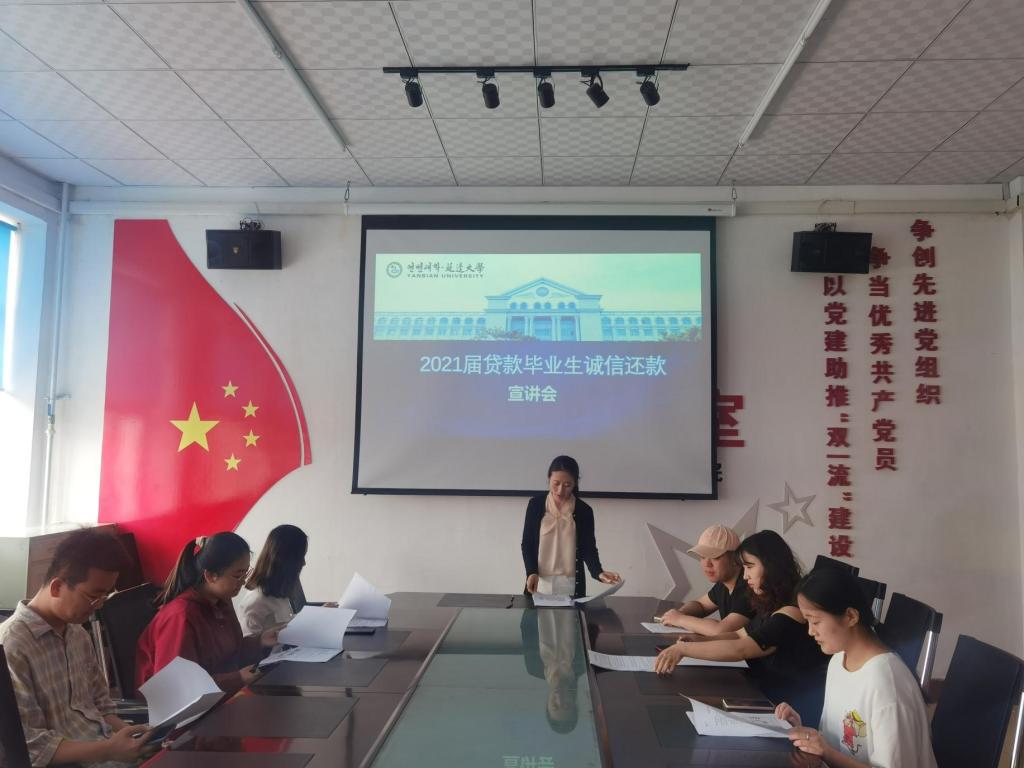于融合楼517召开了2021届贷款毕业生诚信还款主题宣讲活动。研究生辅导员金兰老师及2021届贷款毕业生参加了本次会议。