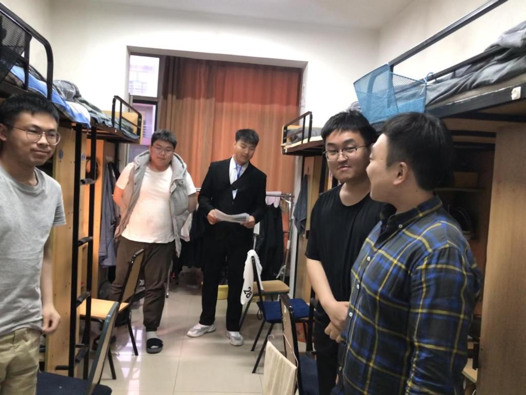 英语专业学生党支部金春宪书记带领英语专业团总支成员对学生寝室开展了走访活动。
